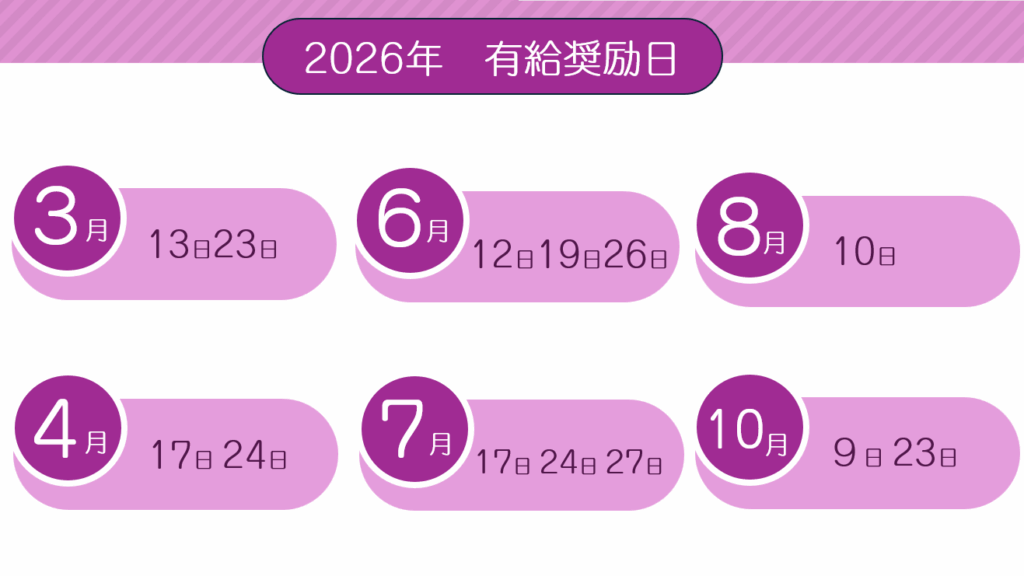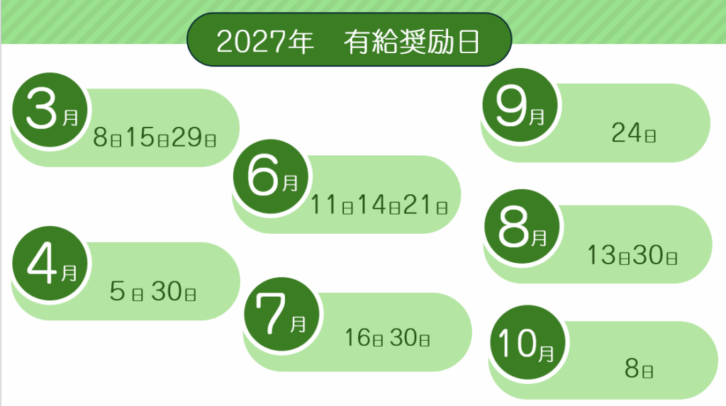 ■毎年11月頃に次年の有給奨励日を設定いたします